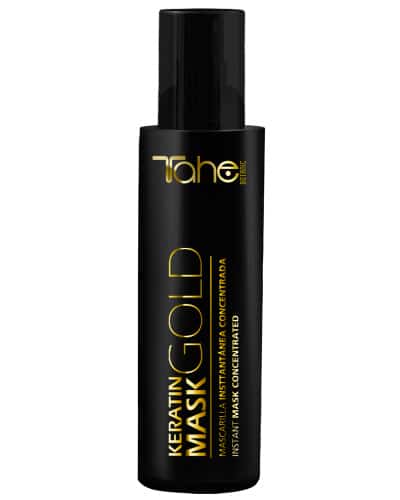 Wanneer het wordt aangebracht voor het steilen of krullen met een stijltang, beschermt het het haar. De keratine behoudt de gladde of gekrulde vorm die door het strijkijzer is gegeven tot de volgende shampoo. - Tahe Keratin Mask Gold instant-effect geconcentreerd spraymasker voedt, beschermt, verlicht, herstelt, disciplineert, behoudt de kleur, herstelt de dikte, ontwart en revitaliseert het haar. Het is magisch! Het kan ook worden gebruikt op droog haar om zachtheid, glans en voeding toe te voegen tussen shampoos door, zoals gewenst.