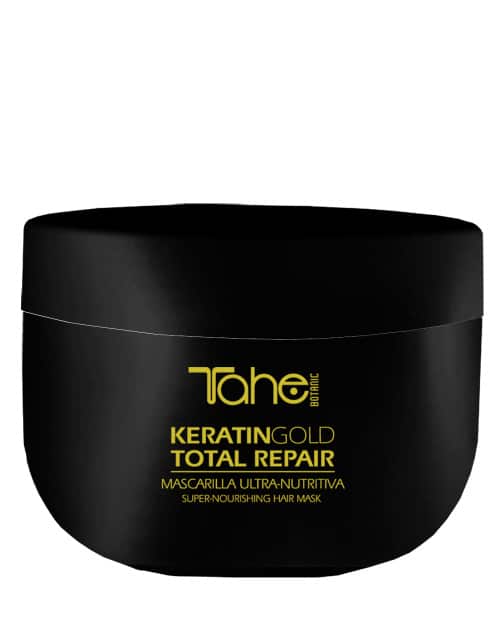De reinigende formule is extreem licht. Deze shampoo geeft ongelooflijke zijdezachtheid, terwijl hij glans en een prachtige glans toevoegt. - Tahé Gold Mask of Keratin Gold Total repair conditioner. Breng aan op handdoekdroog haar en laat 2-3 minuten intrekken voordat je het uitspoelt. Je haar zal gerevitaliseerd zijn.